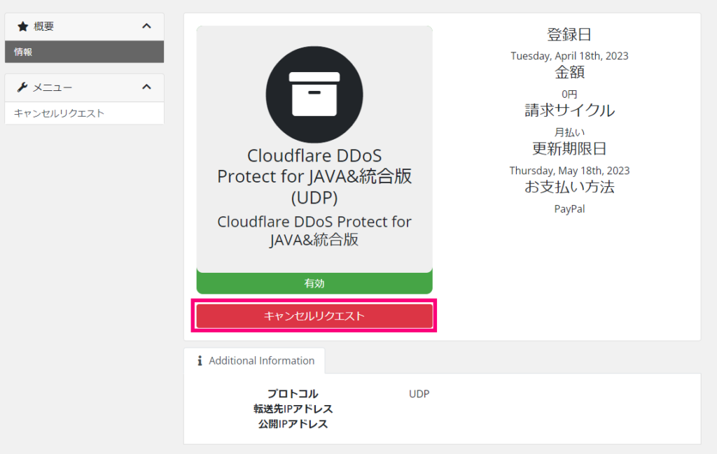 サービスページから申し込んでる場合は以下の手順で、解約が可能です。